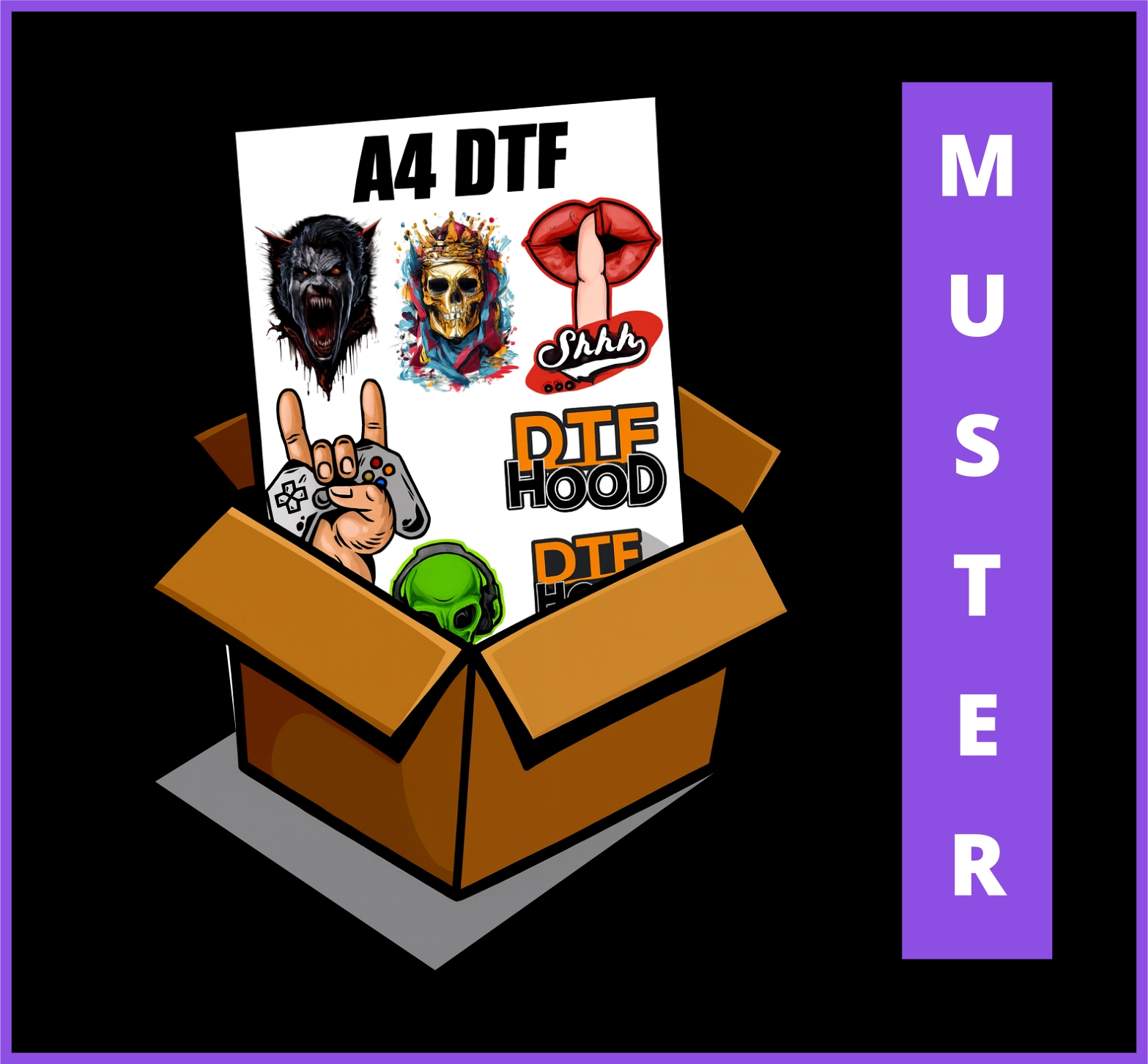 Eine Anleitung zum Anbringen der DTFs befindet sich ebenfalls in der Musterbox. Hier können u.a. die verschiedenen Farbtöne verglichen werden oder das Material an sich (Waschtests usw.)